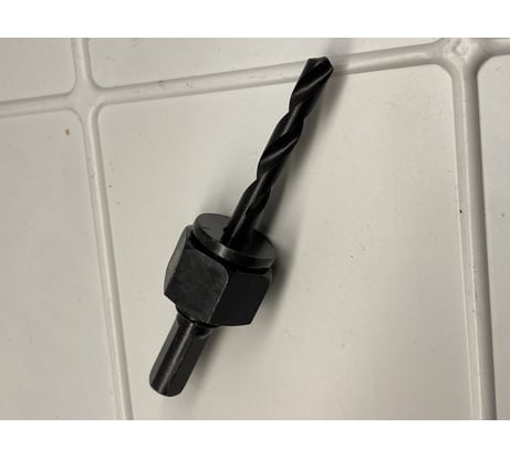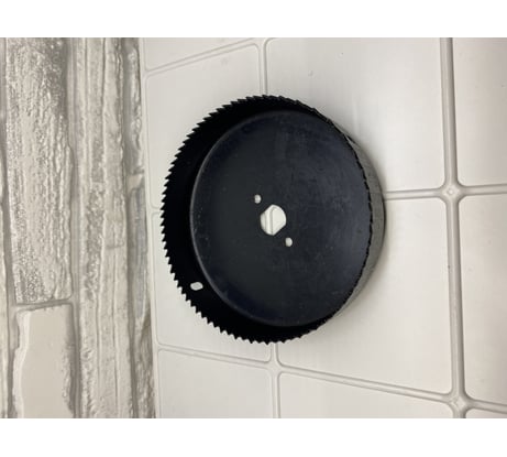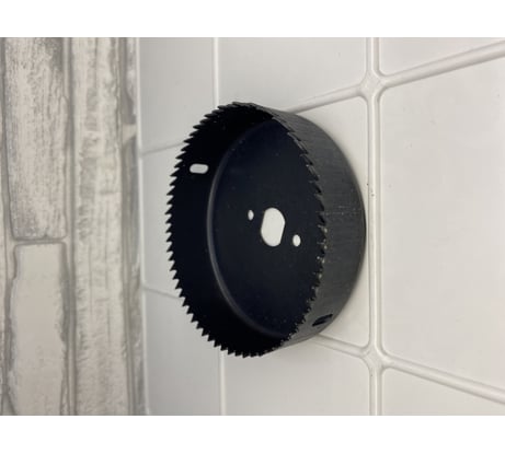Коронка приобретена для вывода воздуховода Ф-100, в дачном щитовом домике. Достаточно большой диаметр коронки может привести к срезу материала коронки в месте стыковки с переходником поэтому сделал дополнительное усиление см фото.