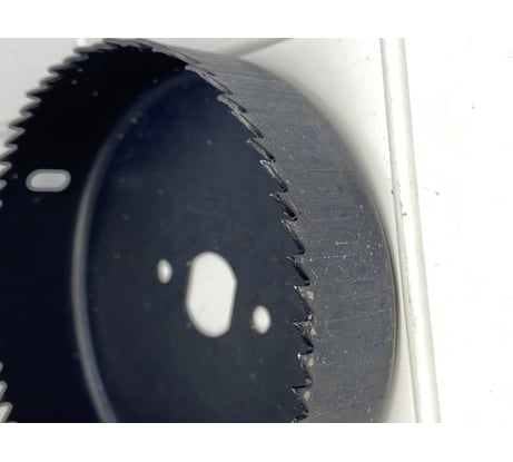 Пилит плохо, хватило на половину отвестия. Дальше коронка провернулась на основании, мягкий метал.