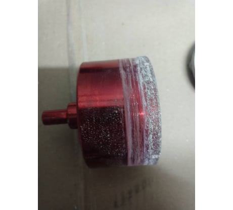 Коронка не симметричная. Достаточно сильное биение. Перьевое сверло стоит более менее ровно. Слой напыление после трёх отверстий подстерся, но не сильно.