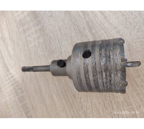 Хорошая коронка, прочная. Сверлил отверстие под вытяжку в бетоне толщиной 80 мм. Перфоратором с ударом сверлит быстро, но нельзя сильно нажимать. Надо давать возможность коронке немного отскакивать от поверхности. Без удара бетон долго, но сверлит. Ни один зуб не отлетел.