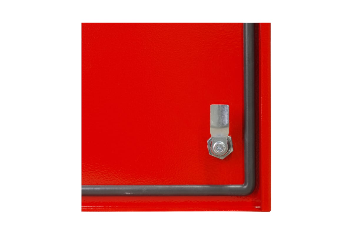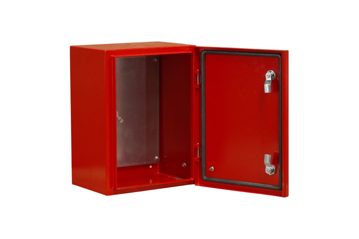 Двойной гиб на корпусе обеспечивает лучшее прилегание уплотнителей, увеличивая их срок службы и повышая герметичность конструкции. Дополнительная отбортовка двери повышает ее жесткость в области замков, делая дверь более устойчивой к механическим воздействиям. Приварные шпильки обеспечивают прочную фиксацию монтажной панели внутри корпуса, исключая возможность её случайного сдвига. Отбортовка монтажной панели улучшает её устойчивость к деформациям при монтаже и эксплуатации. Замки покрыты оцинкованным покрытием, защищающим их от коррозии и продлевающим срок службы. Угол открытия двери стал больше благодаря дополнительному вырезу на двери под петлей, что облегчает доступ к внутреннему пространству шкафа.