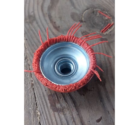 На щетке установлена гайка с резьбой М14 – для установки на УШМ («болгарку») с регулировкой оборотов (максимальное число оборотов - 6500 об/мин.).