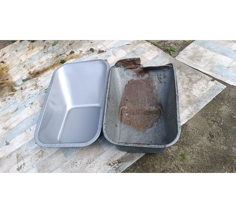 стандартное высокое и узкое корыто преимущественно для одноколесных тачек, 5 отверстий под крепежные болты, из минусов - толщина, конечно, меньше заявленной, скорее 0,7мм