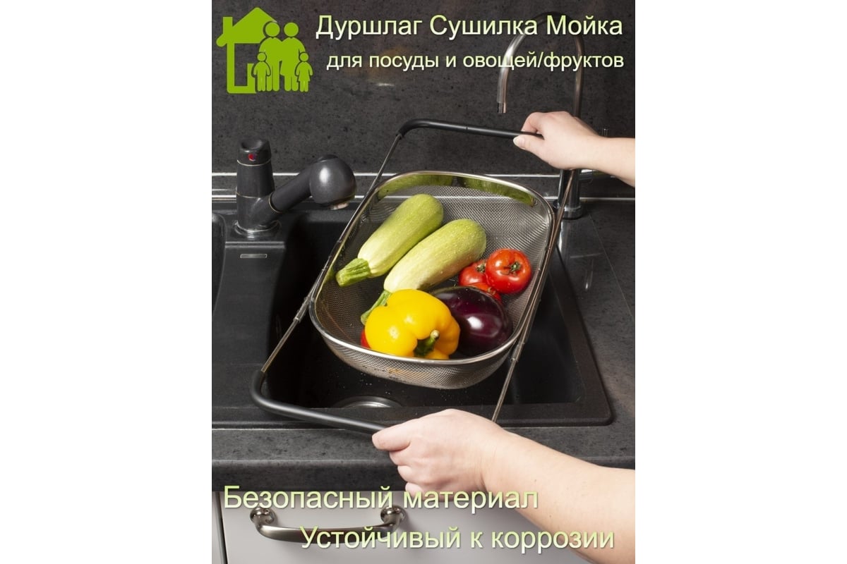 Дуршлаг - сушилка в раковину STEEL TOUCH 34х24 см. Раздвижная решётка - сушилка для раковины подходит для сушки овощей и фруктов, посуды и столовых приборов после мытья. Дуршлаг предназначен для промывки макаронных изделий, мытья фруктов и овощей. Идеально подходит для разморозки рыбы и мяса, а также для промывания овощей, грибов, фруктов, ягод, зелени. Корзина подстраивается под размеры Вашей мойки, поскольку имеет специальные раздвижные ручки-держатели. Подходит для любых размеров раковин. Сушилка предназначена для использования над мойкой. Подходит для хранения и сушки посуды и столовых приборов. Можно использовать как сушилку для посуды, овощей и фруктов. Устойчивые ножки позволяют ставить в раковину или на стол при использовании. Удобно взять с собой на природу. Дуршлаг можно мыть в посудомоечной машине. Раздвижной дуршлаг - это удобный помощник дома, на даче. Сетка сушилки выполнена из нержавеющей стали, которая не боится воды и не подвержена коррозии.