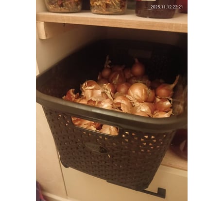 Отличная корзина. Использую для лука . храню в прохладном месте лук на зиму