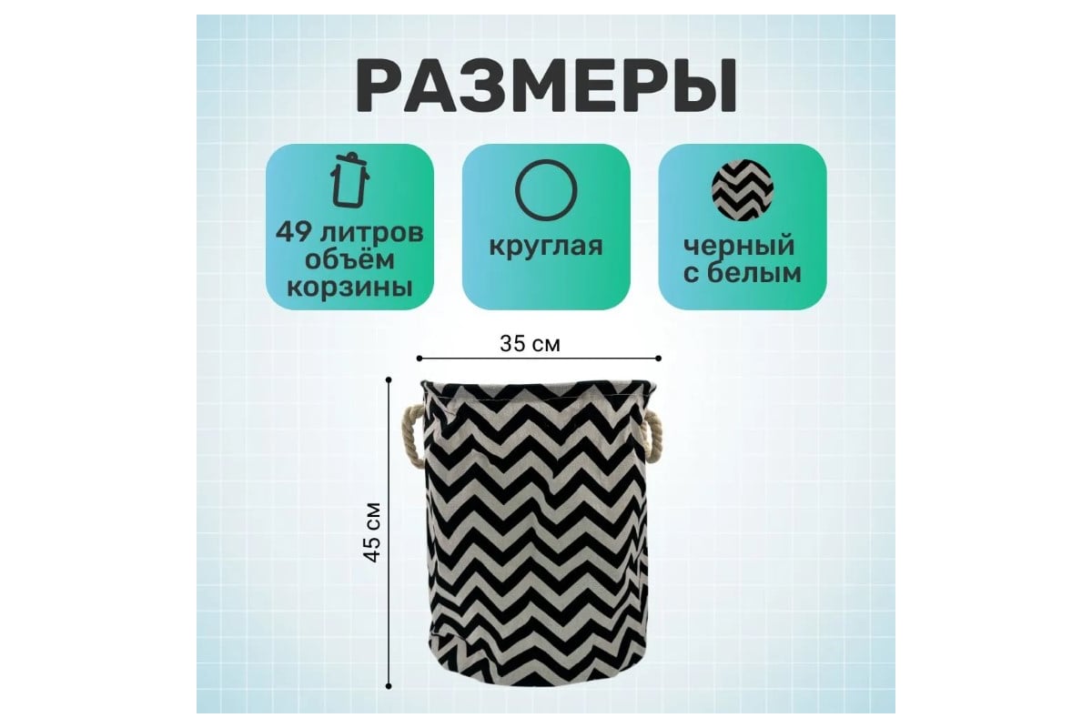 Корзина для белья Homium Round, цвет черный/белый, размер 35х45 см laundryrnd05