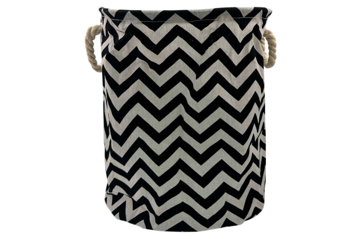 Изготовленный из высококачественной ткани бак для вещей обладает долговечностью и способен прекрасно держать форму. Круглая корзина выполнена в черно-белом сочетании цветов и имеет оригинальный принт, который подойдет для любого интерьерного решения и добавит милый акцент в декор вашего дома.