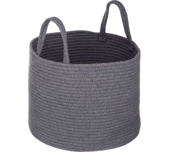 Стильная монохромная корзина сплетена из хлопкового шнура классического серого цвета. Она гармонично дополнит интерьер в стиле эко, бохо или минимализм и поможет навести порядок на полках стеллажа, на полу в спальне или в ванной комнате.