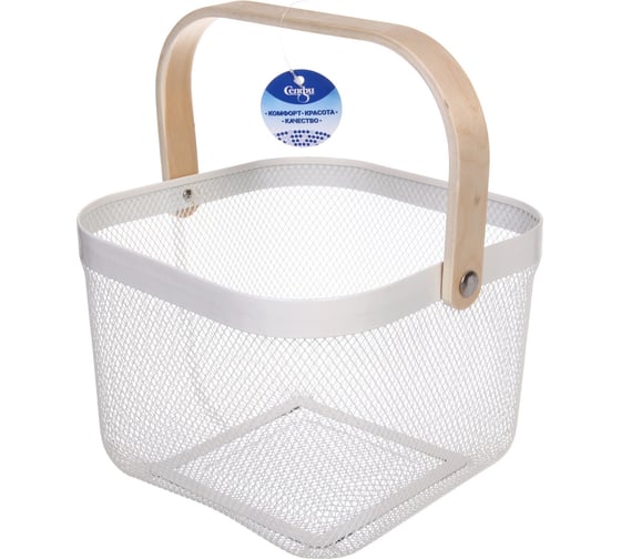 Корзина для хранения металлическая с деревянной ручкой Селфи ФАРГО, цвет молочный, 24*24*18*см✦ 658-260