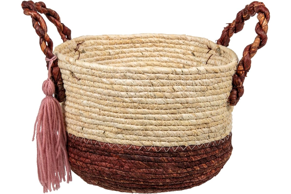 Плетеная корзина с ручками и симпатичной шерстяной кисточкой станет отличным функциональным решением для открытого хранения вещей и разных мелочей, которые обычно некуда сложить. Прекрасное дополнение интерьера в стиле бохо и эко-бохо, кантри, фьюжн или в колониальном стиле. 100% ручная работа. При изготовлении корзины используются только натуральные материалы, прошедшие антибактериальную обработку. Материал: кукурузный лист, шерстяная веревка.