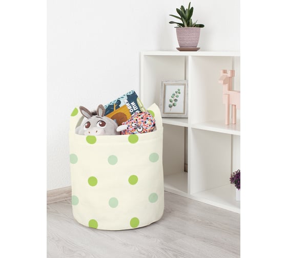 Изделие может выполнять множество практических функций, например, при поездке на природу в него удобно сложить запасную детскую одежду. В пустом состоянии корзина складывается и занимает минимальное количество места. Внутри изделия имеется тканевая крышка с фиксирующим шнурком, которая позволяет зафиксировать уже сложенные игрушки.