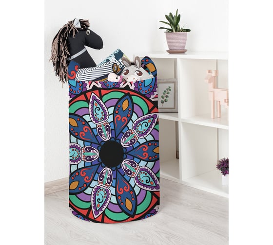 Изделие может выполнять множество практических функций, например, при поездке на природу в него удобно сложить запасную детскую одежду. В пустом состоянии корзина складывается и занимает минимальное количество места. Внутри изделия имеется тканевая крышка с фиксирующим шнурком, которая позволяет зафиксировать уже сложенные игрушки.