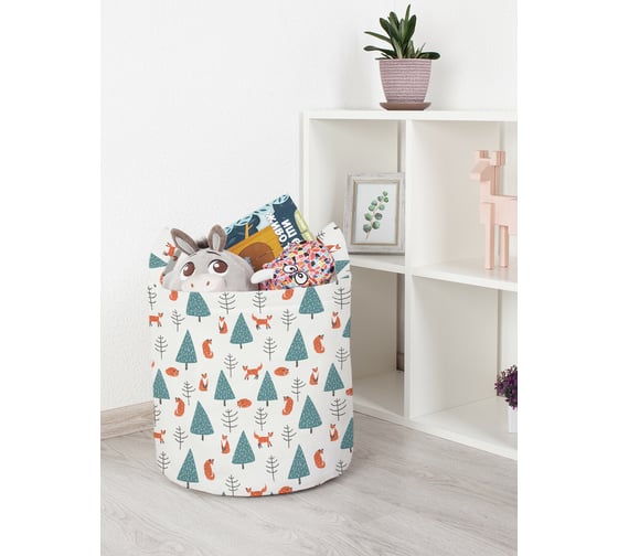 Изделие может выполнять множество практических функций, например, при поездке на природу в него удобно сложить запасную детскую одежду. В пустом состоянии корзина складывается и занимает минимальное количество места. Внутри изделия имеется тканевая крышка с фиксирующим шнурком, которая позволяет зафиксировать уже сложенные игрушки.