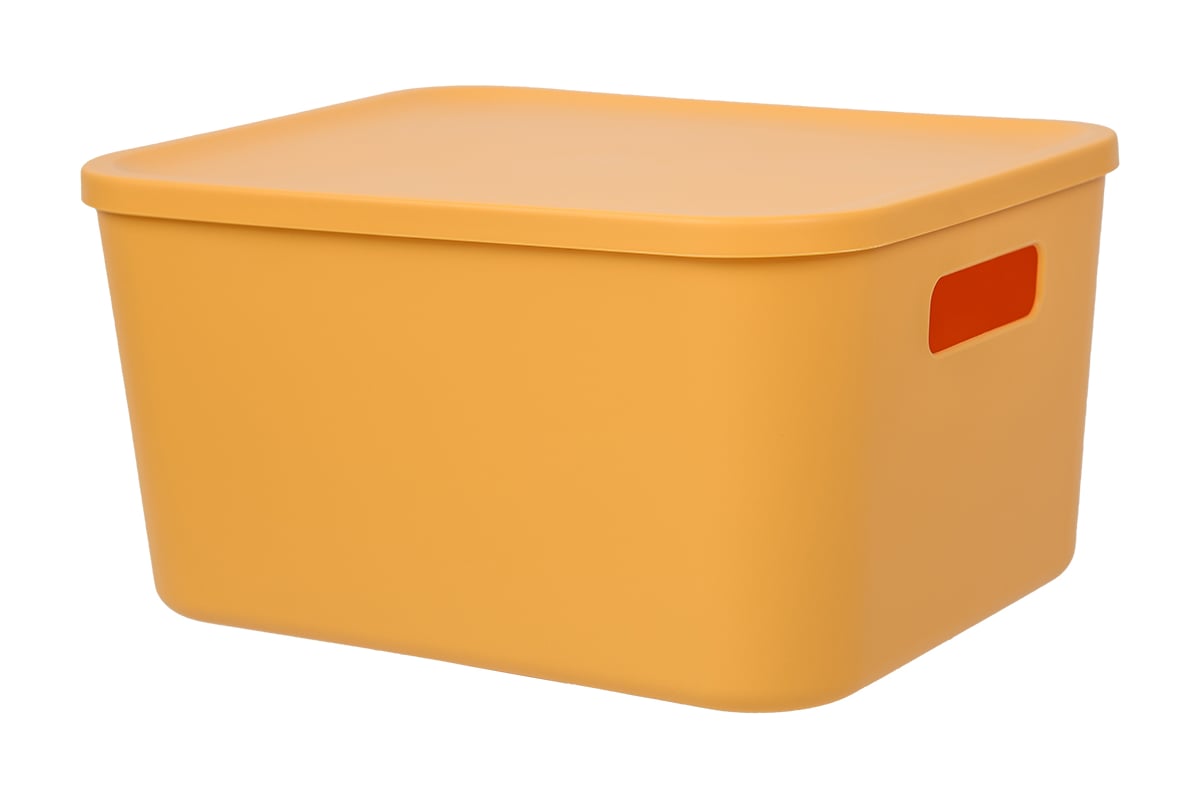 Корзина-короб с крышкой из коллекции «Оптима» от Handy Home изготовлена из прочного пластика для надежного хранения содержимого. В крышке есть специальные выемки для штабелирования корзин как одинакового, так и разного размера, что позволяет максимально эргономично хранить их на кухне, в гардеробной, детской, гараже, в офисе, на даче и в любом помещении. Такие корзины для хранения не впитывают запахи, легко моются, а их разные цвета (желтый, оранжевый и синий) очень удобны с точки зрения быстроты поиска нужной вещи. Материал: пластик.