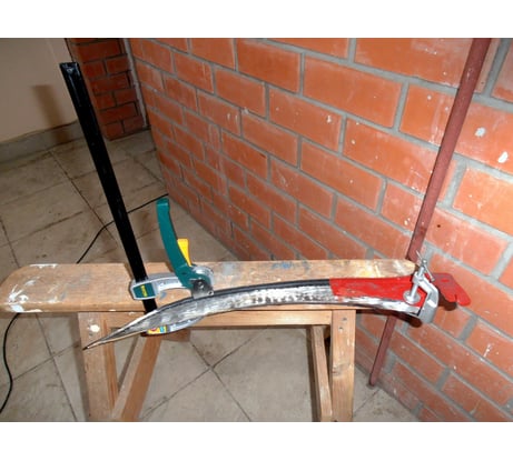 - Прочность и долговечность — коса изготовлена из инструментальной среднеуглеродистой стали методом ковки
