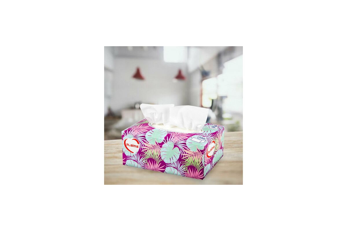 Косметические салфетки LAIMA Everyday 200 штук в картонном боксе двуслойные, 20x20 см 113589 используются для корректировки макияжа, удаления косметических средств, в качестве носовых платочков.