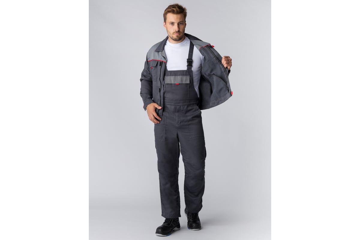 Полукомбинезон подходит мужчинам разной комплекции, т.к. оснащен бретелями с регулировкой по длине и поясом на резинке.