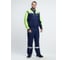 Костюм включает в себя два элемента: куртку на скрытой молнии и полукомбинезон. Оснащен широкими светоотражающими полосами 50 мм для безопасной работы в местах с плохим освещением и в темное время суток.