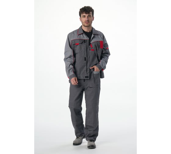 Костюм с полукомбинезоном Драга-2 (ткань Смесовая МВО, 240) т.серый/св.серый/красный 87490706.01