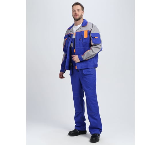 Костюм с полукомбинезоном Драга-2 (ткань Смесовая МВО, 240) васильковый/св.серый/оранжевый 87490704.018