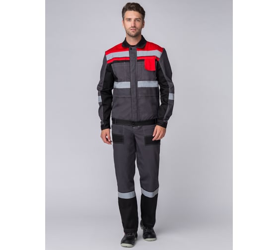 Костюм Факел Виват-1 Премиум, серый/черный/красный, р.64-66, рост 170-176 87473059.011 защищает от общих производственных загрязнений и механических воздействий.