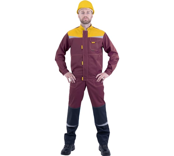 Костюм ГК Спецобъединение КМ-10 ЛЮКС летний, бордовый-желтый-черный (Куртка+полукомбинезон) (120-124, 158-164), компл, Кос 032/120/158