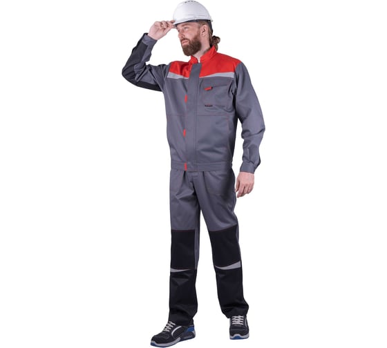 Костюм ГК Спецобъединение КМ-10 ЛЮКС летний, серый-красный-черный (Куртка+брюки) (144-148, 194-200), компл, Кос 575/144/194