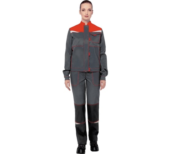 Костюм ГК Спецобъединение КМ-10 ЛЮКС летний, серый-красный-черный, женский (Куртка+брюки) (120-124, 182-188), компл, Кос 066/120/182