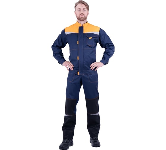 Костюм ГК Спецобъединение КМ-10 ЛЮКС летний, т.синий-оранжевый (Куртка+полукомбинезон) (152-156, 182-188), компл, Кос 050/152/182