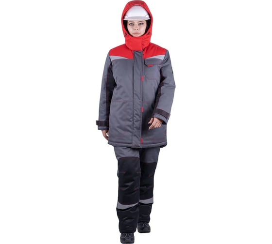 Костюм ГК Спецобъединение КМ-10 ЛЮКС зимний 3-4 класс, серый-красный-черный, женский (120-124, 182-188), компл, Кос 237/120/182