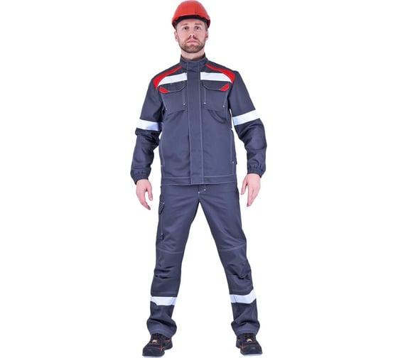 Костюм ГК Спецобъединение СТАРАТЕЛЬ летний, серый-красный (Куртка+брюки) (136-140, 170-176), компл, Кос 555/136/170