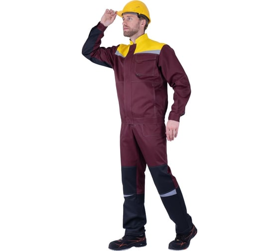 Костюм летний бордовый-желтый-черный ГК Спецобъединение КМ-10 ЛЮКС (Куртка+полукомбинезон) (136-140, 194-200), компл, Кос 032/136/194