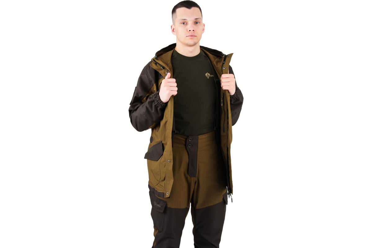 Анатомический крой комплекта обеспечивает полную свободу движений, а ветрозащитная планка надежно укроет от порывов ветра. Регулируемый капюшон позволит адаптировать костюм под любые погодные условия. Множество функциональных карманов на молниях и кнопках обеспечат удобное хранение всех необходимых мелочей.