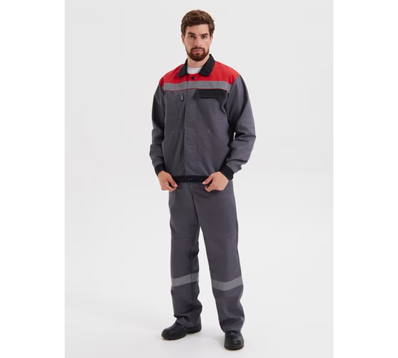 Костюм РАССО Корпус куртка+брюки, смесовая 65/35, плотность 240 г/м2, темно-серый/черный/красный, р.44-46/170-176 77218 (44/170)