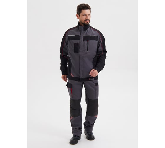 Костюм РАССО "КОСТА" куртка+брюки, цвет серый/чёрный/красный (ткань Tomboy), р 44-46/170-176 77251 (44/170)