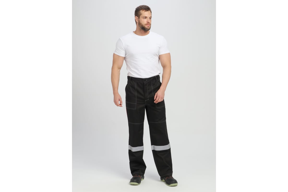 - По кокеткам, полочкам, спинке, рукавам и брючинам расположены - световозвращающие полосы, что позволяет использовать костюм