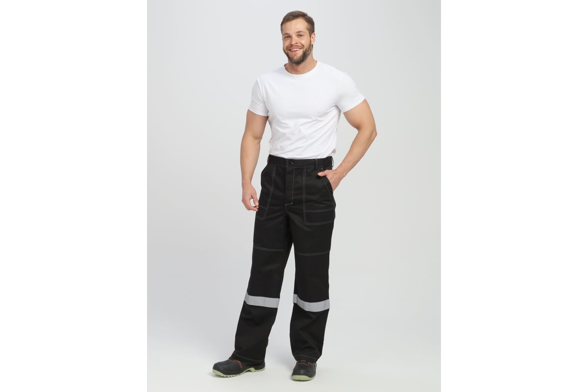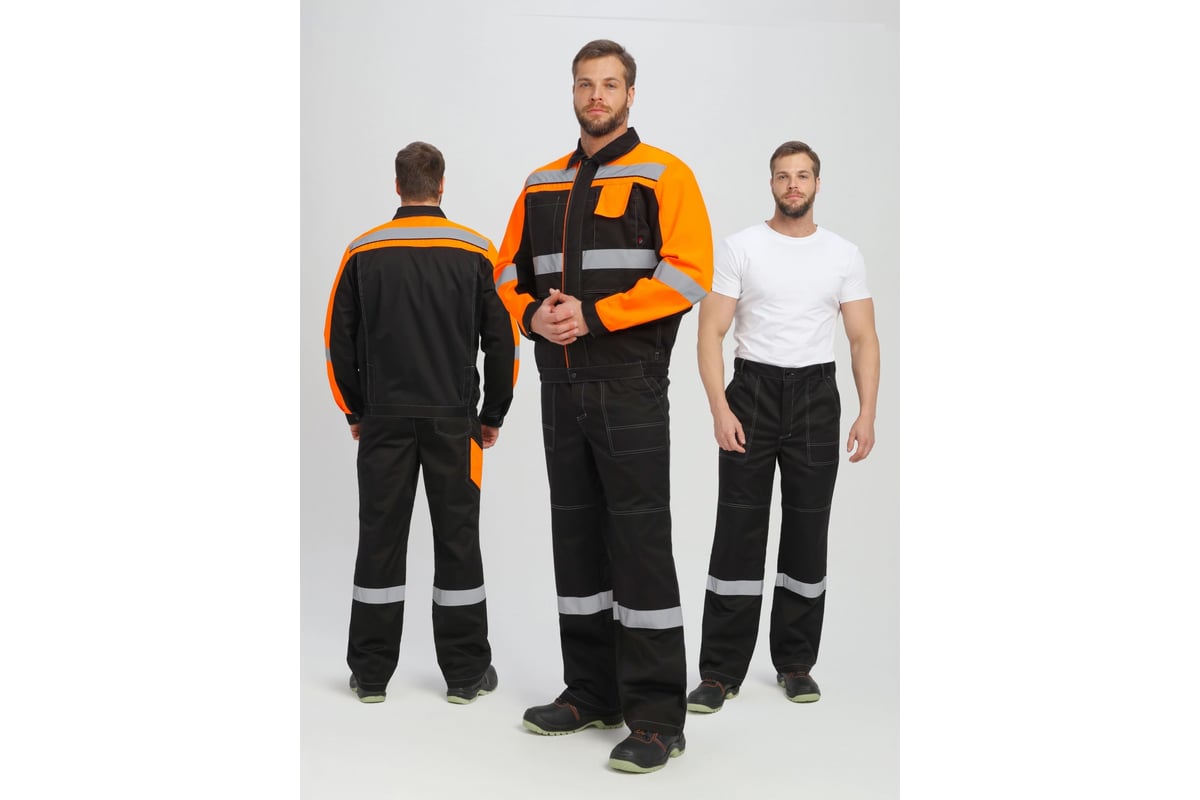 - По кокеткам, полочкам, спинке, рукавам и брючинам расположены - световозвращающие полосы, что позволяет использовать костюм