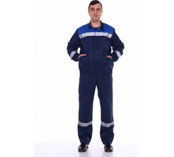 Костюм с полукомбинезоном Факел Легион-2 СОП Л-КПк, темно-синий/васильковый, размер 68-70, рост 194-200 87487657.023 включает в себя куртку на пуговицах и полукомбинезон рабочий. Оснащен широкими светоотражающими полосами для безопасной работы в местах с плохим освещением.