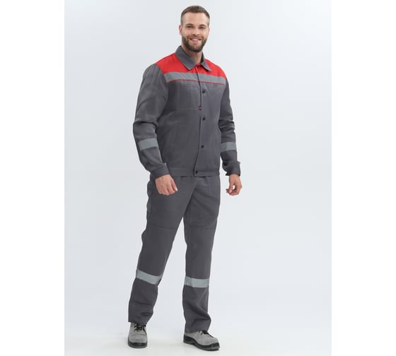 Костюм с полукомбинезоном Лигор-2 СОП Факел (ткань смесовая, 210) т.серый/красный, 60-62; 182-188 87482762.010