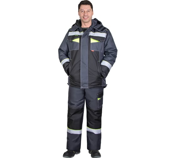 Костюм СИРИУС ХОВАРД-М зимняя куртка дл.,брюки,т-серый с чер. и лимонной отделкой и СОП 50 мм р. 96-100/170-176 153986