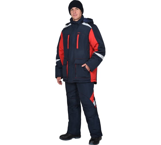 Костюм СИРИУС САТУРН зимний: куртка дл.,брюки т.синий с красным и СОП 50 мм р. 104-108/170-176 43556