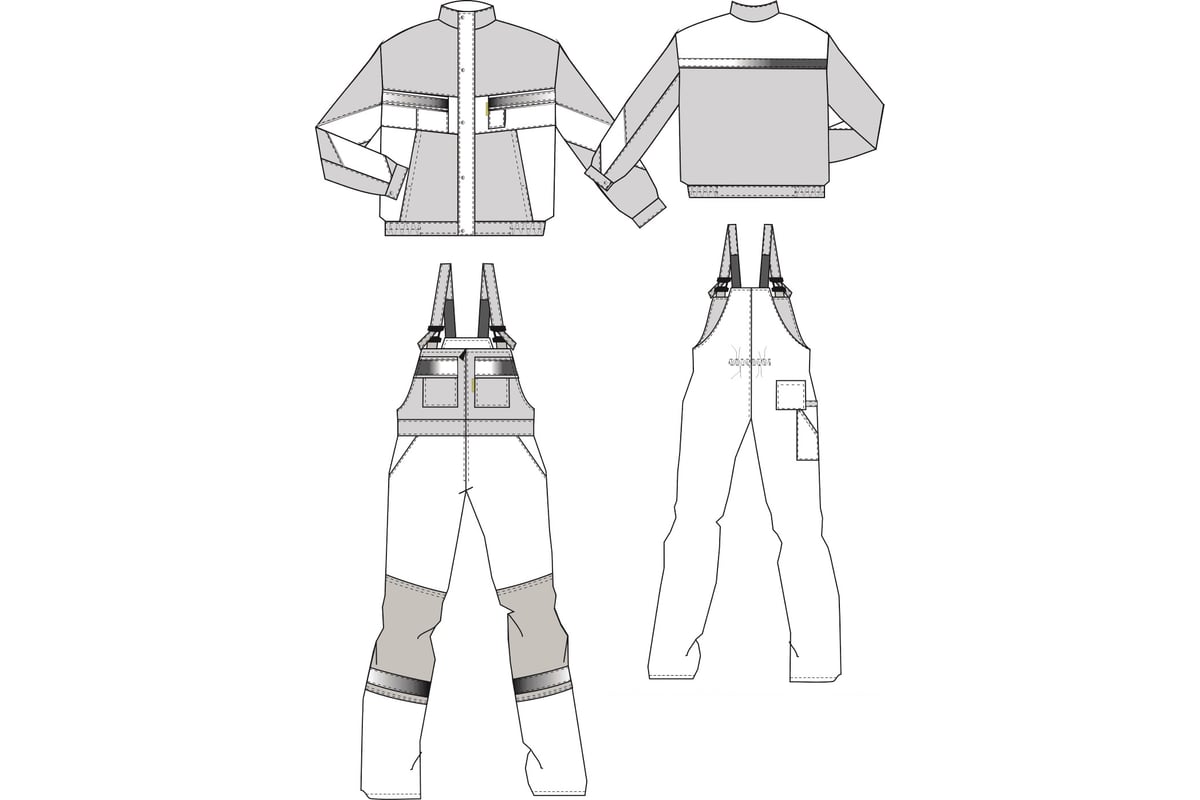 - На полукомбинезоне располагаются накладные боковые карманы