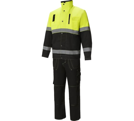 Костюм СОЮЗСПЕЦОДЕЖДА Премиум черный/лимонный, р. 52-54, рост 182-188 2000000065663 состоит из брюк и куртки.