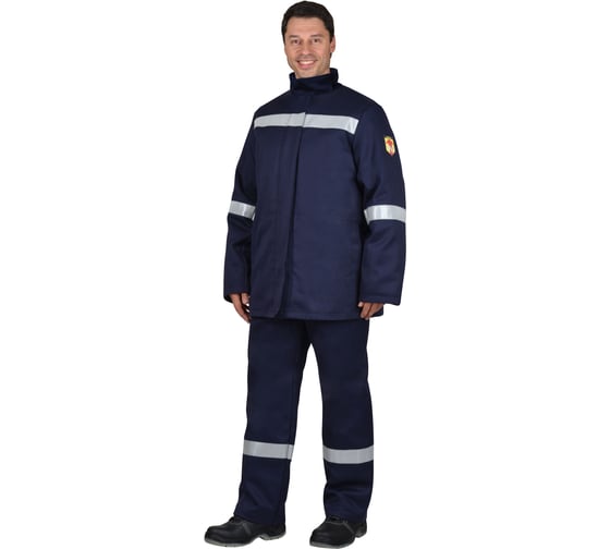 Материал верха: «Гефест 450» с огнеупорной пропиткой (ОП), плотность 450 г/м², состав 100% ХБ, цвет: т/синий.
