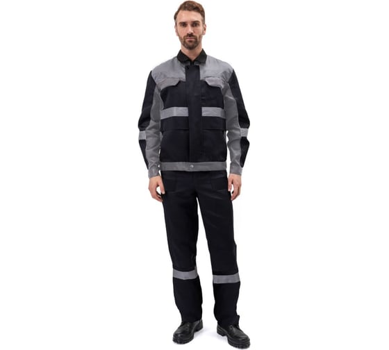 Костюм URSUS РЕСПЕКТ куртка/полукомб. КОС821-ЧЕРНЫЙ/СЕРЫЙ/44-46, 170-176