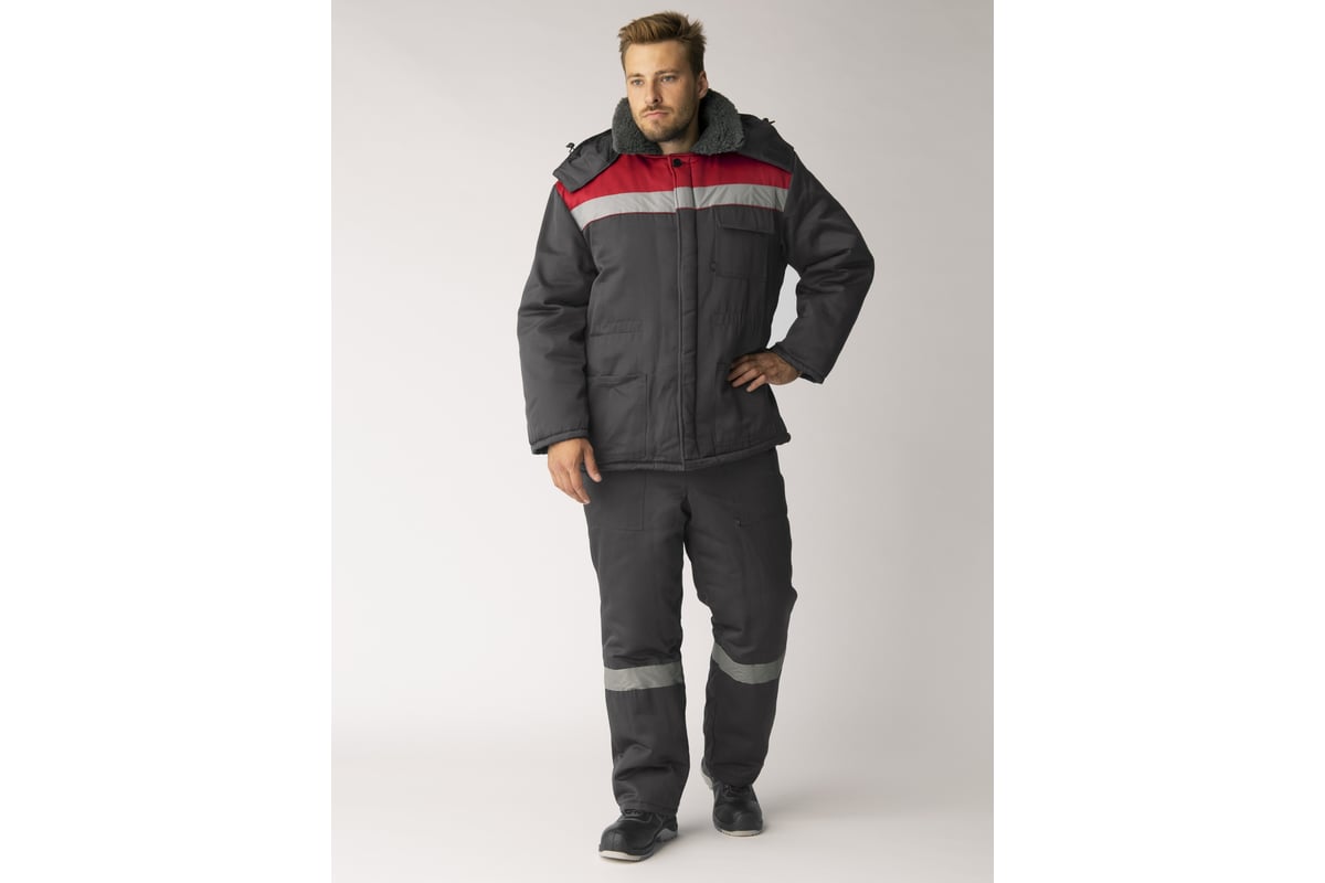 Костюм зимний ФАКЕЛ Труженик-Ультра (тк.Смесовая,210) брюки, темно-серый/красный 87483590.024