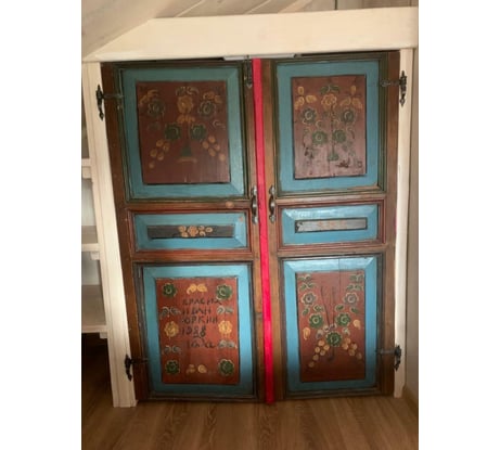 Оригинальная ручка на деревянную дверь. Шесть отверстий для надёжного крепления. Приемлемая эргономика (насколько это возможно для грубой ковки).