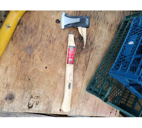 После третьего удара вылетело топорище, а с виду так крепко держался.