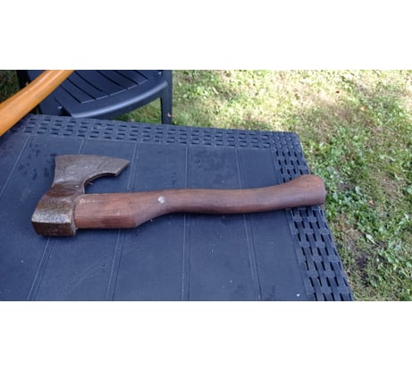 Хороший топор за 1300₽. Брал на доработку изначально. До ума довести на даче за денек вполне реально. В любом случае любому купившему придется перетачивать, понимайте это перед покупкой. Металл в лаке, видимо такой способ консервации. Снимать еще не пробовал, но по ощущениям 646 справится. Топорище очень удобное, но надо напитывать маслом, цвет на фото - морилка, не масло или лак. В общем именно то, что хотел. Если со всеми доработками, то его стоимость будет в районе 3К. Так что если нужно нечто готовое и очень качественное, то ищите дороже 3 тысяч, а этот нужно допиливать.