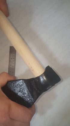 Это не топор, это томагавк с кривым, шатающимся лезвием. Нелепица какая-то, а не инструмент. Но лезвие покрыто воском от ржавчины.